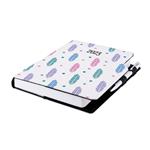 Diár obsahuje: okrúhle odtrhávacie rožky, bielu záložku a pero
