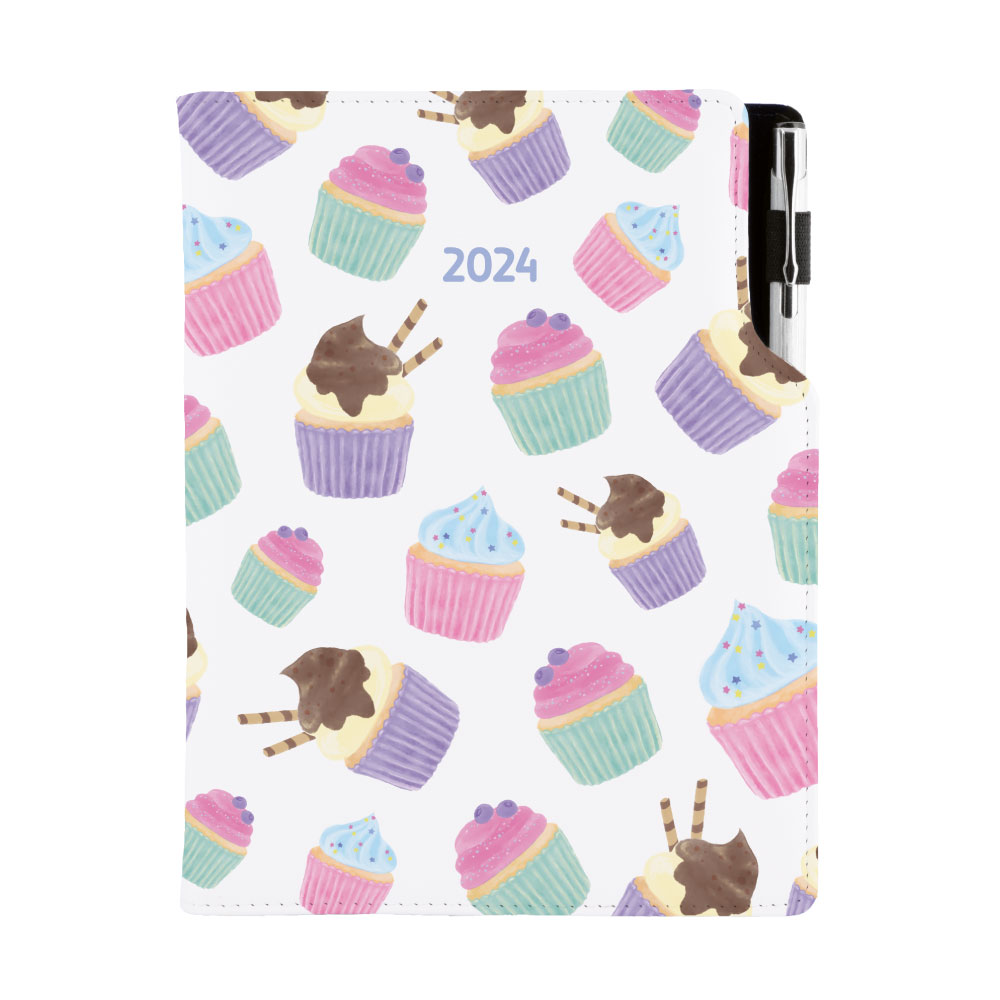 Diár obsahuje: okrúhle odtrhávcie rožky, bielu záložku a pero