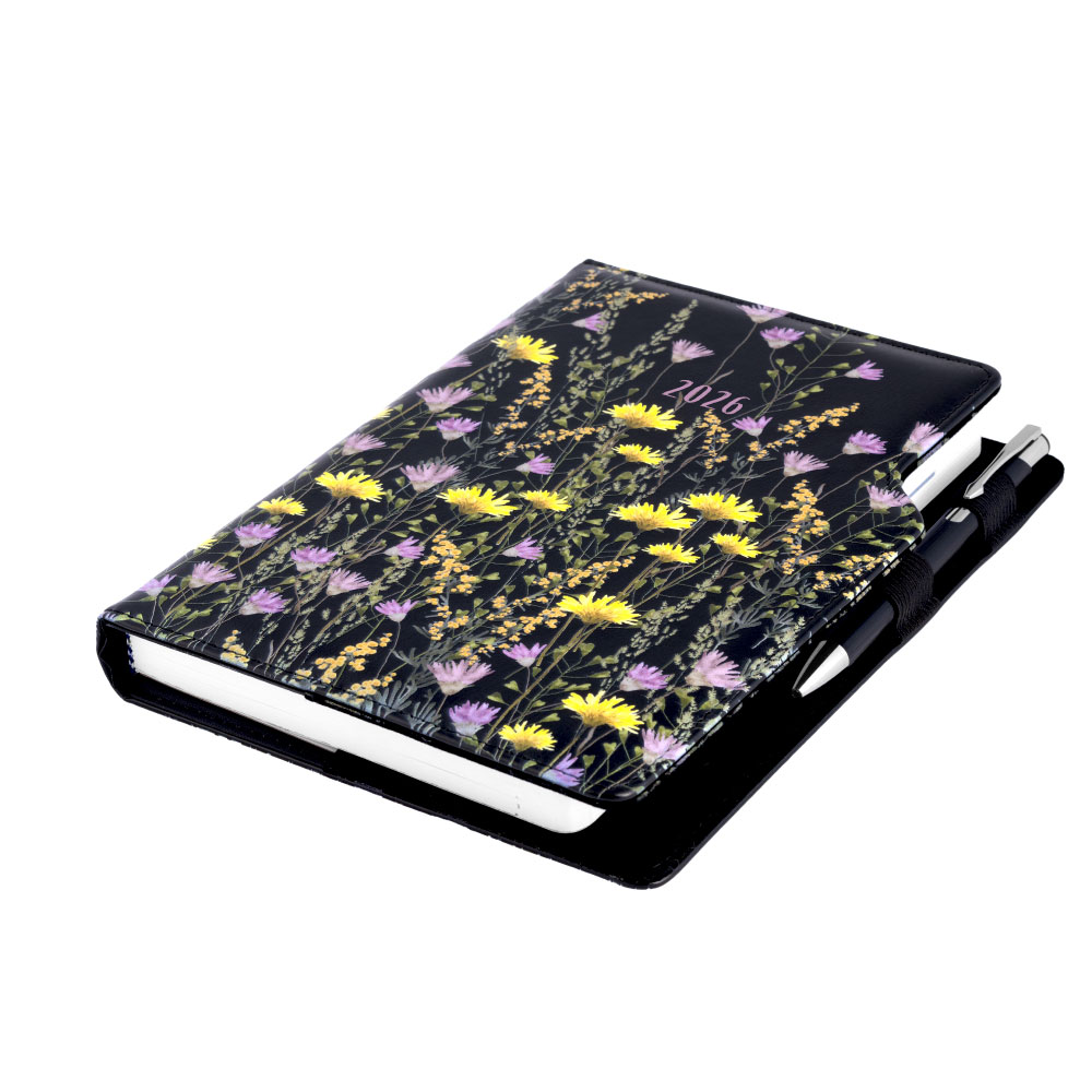 Diár DESIGN denný B6 2026 poľský - čierna - lúka