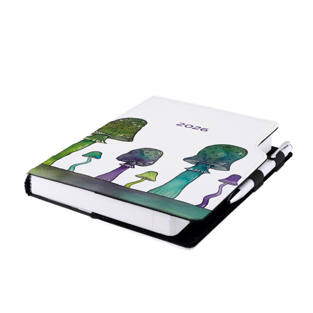 Diár obsahuje: okrúhle odtrhávacie rožky, bielu záložku a pero