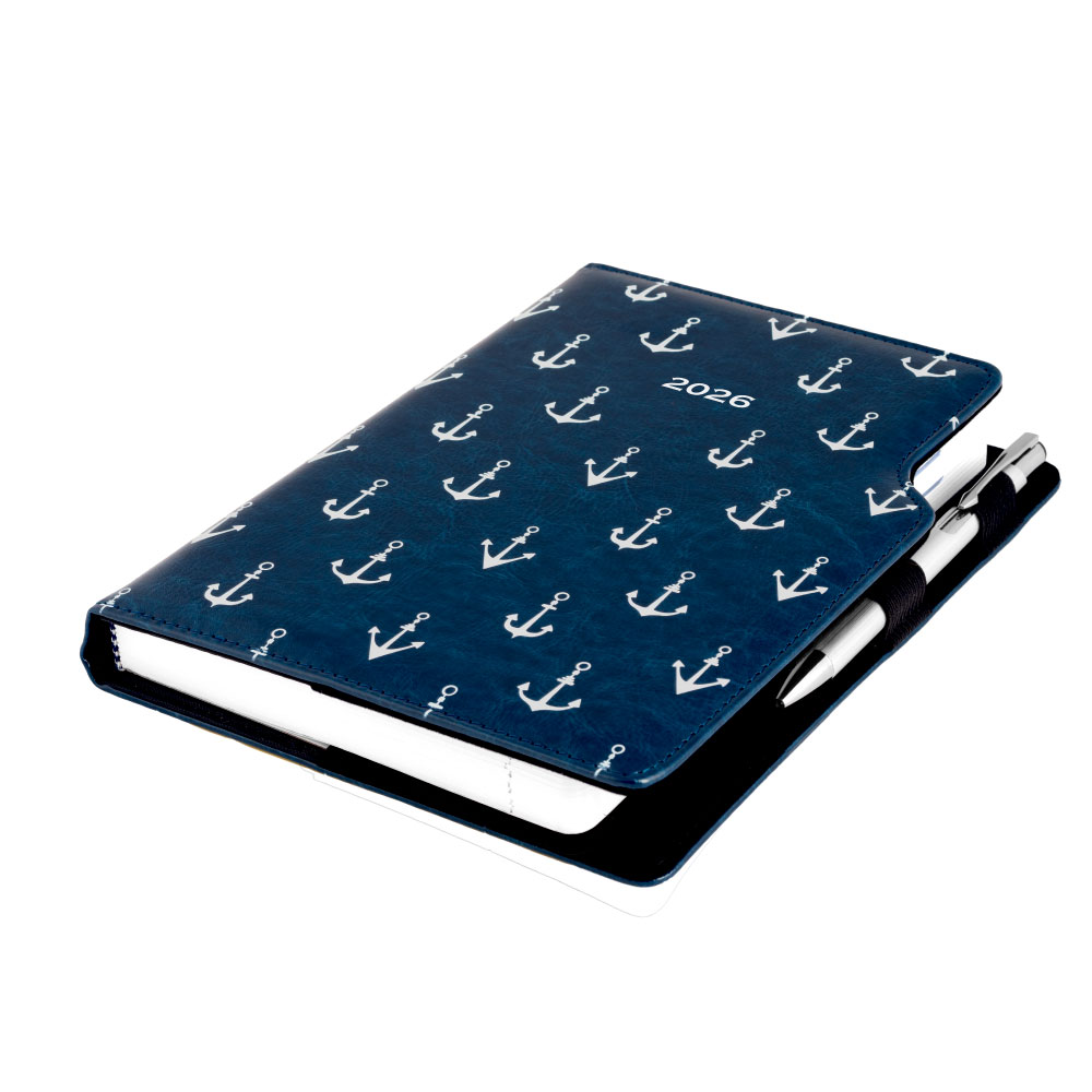 Diár DESIGN denný B6 2026 poľský - modrý - námorník - kotvy