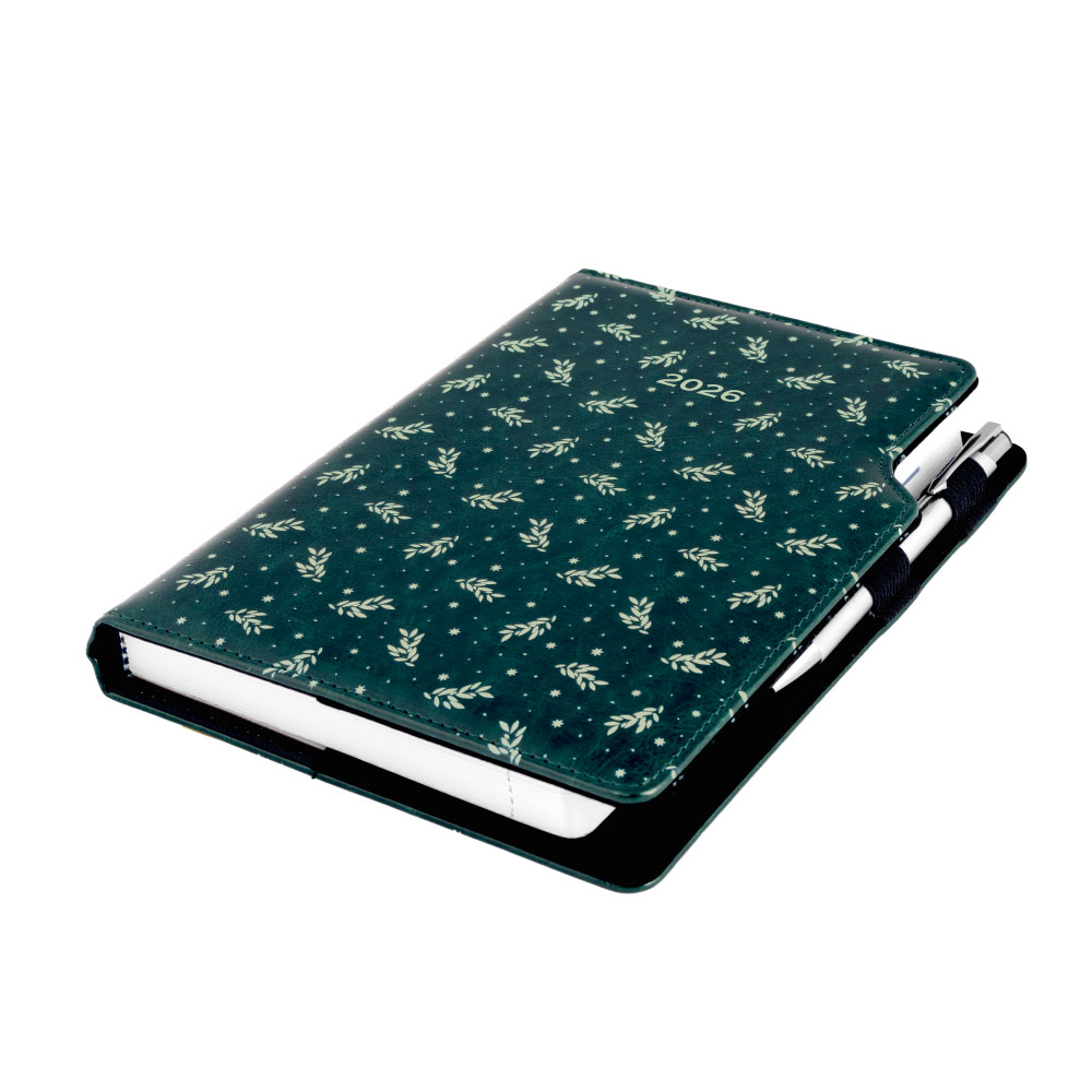 Diár DESIGN denný B6 2026 poľský - zelená - vetvičky