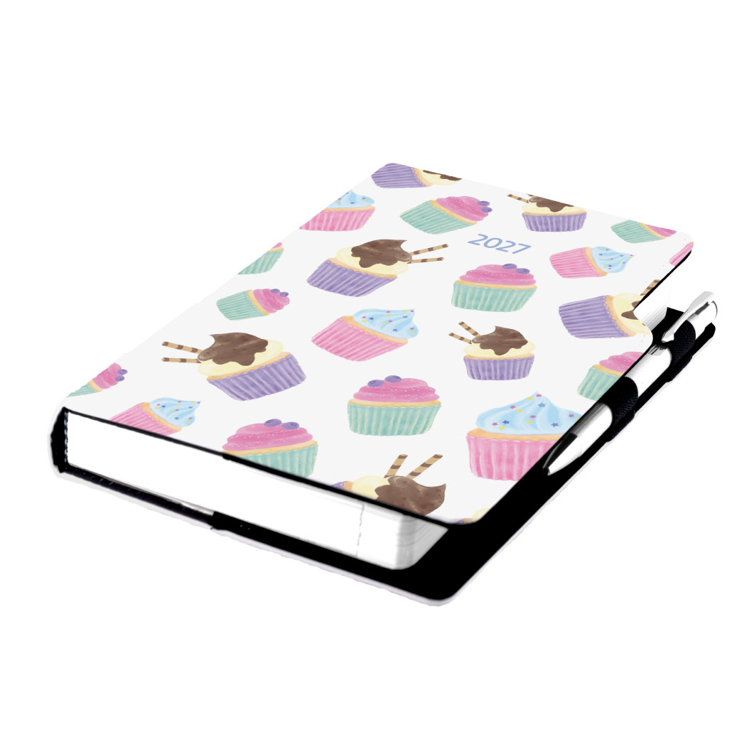 Diár obsahuje: okrúhle odtrhávcie rožky, bielu záložku a pero