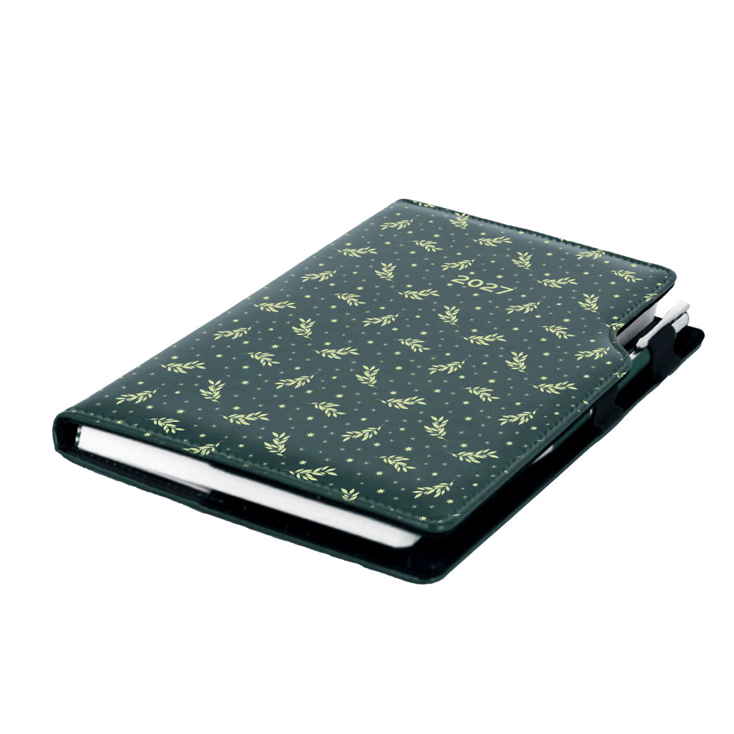 Diár DESIGN denný B6 2027 poľský - zelená - vetvičky
