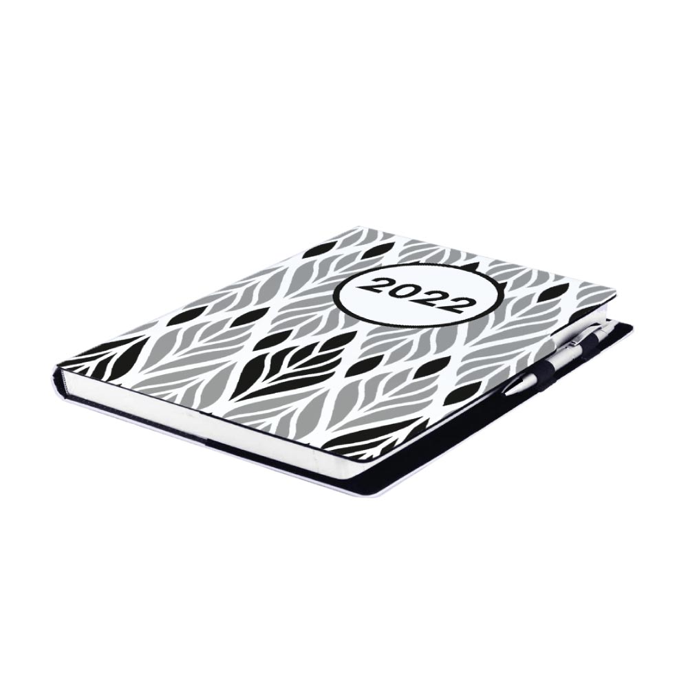 Diár obsahuje: okrúhle odtrhávacie rožky, bielu záložku a pero
