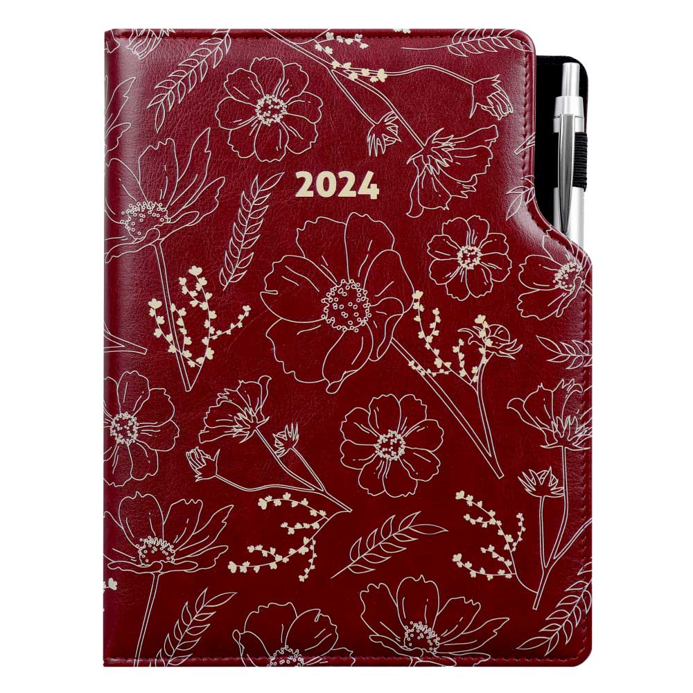 Diár DESIGN týždenný A4 2024 - bordová - kvety