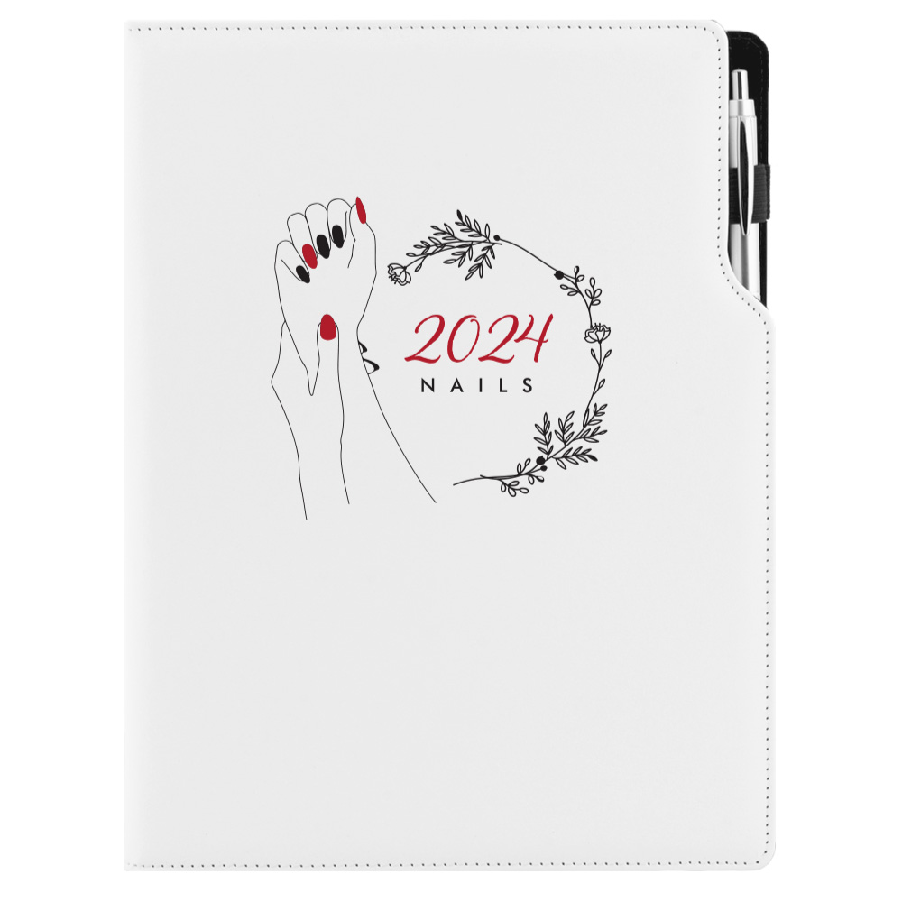 Diár obsahuje: okrúhle odtrhávcie rožky, bielu záložku a pero