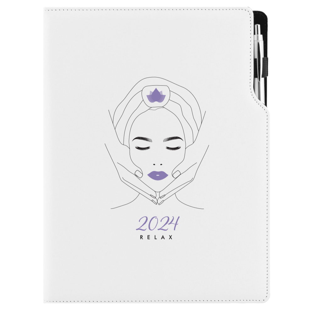 Diár obsahuje: okrúhle odtrhávcie rožky, bielu záložku a pero