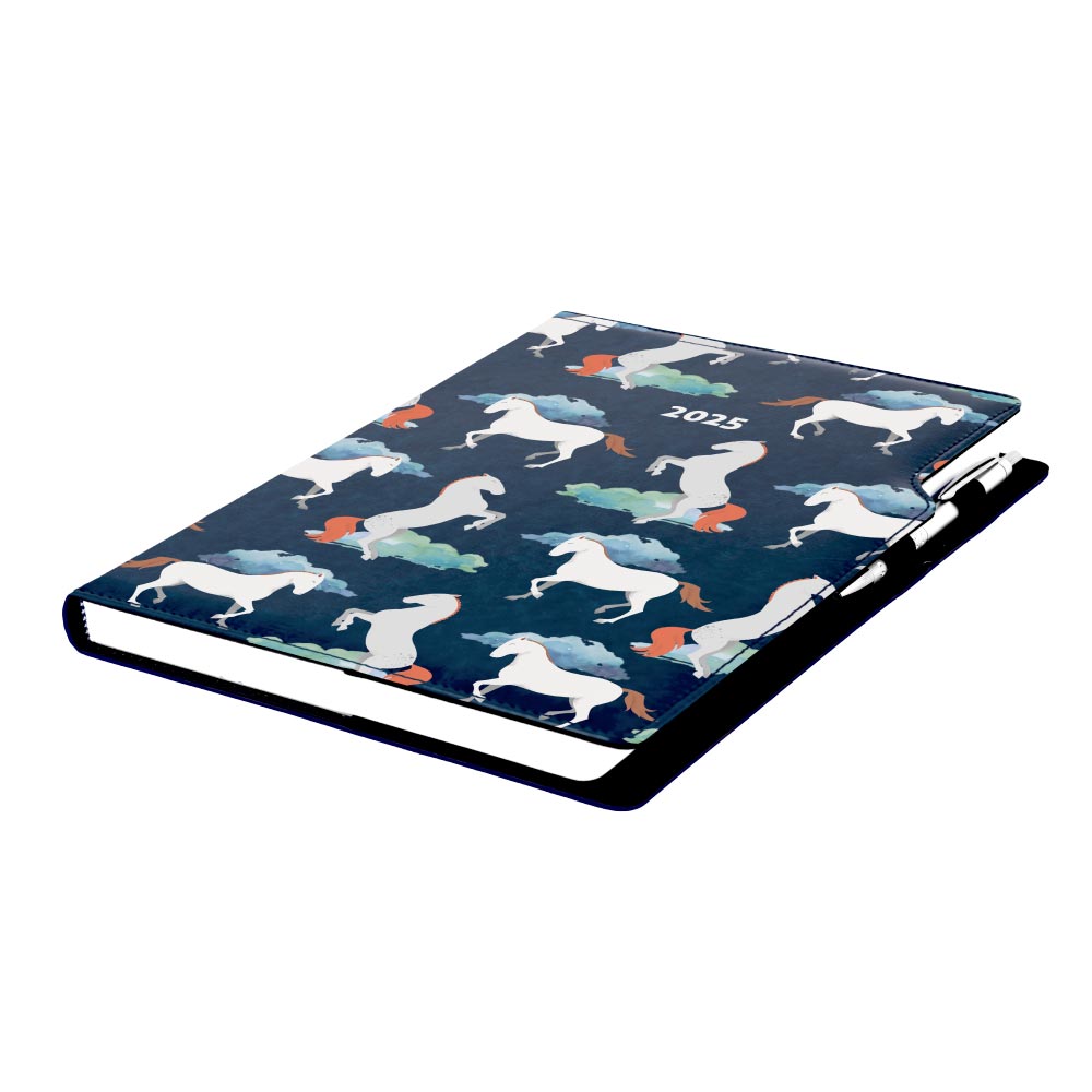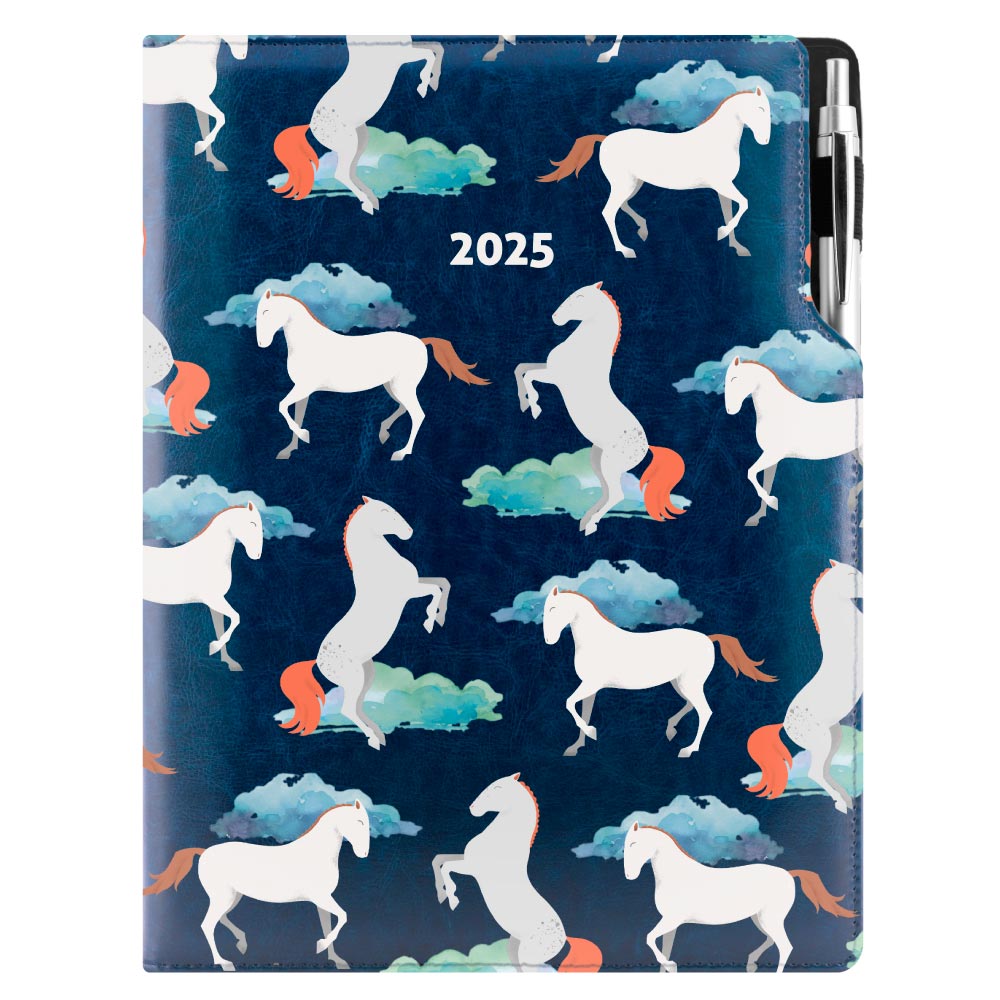 Diár DESIGN týždenný A4 2025 poľský - modrý - kone