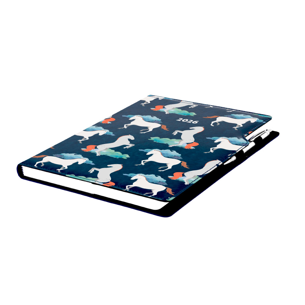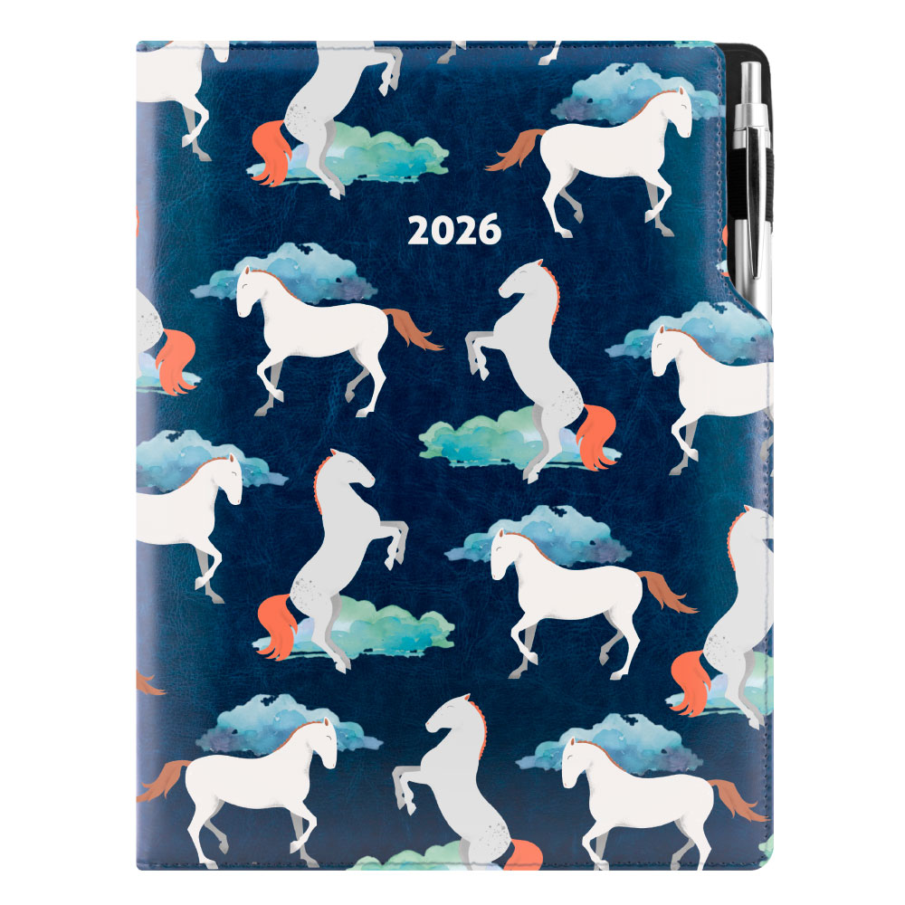 Diár DESIGN týždenný A4 2026 poľský - modrý - kone