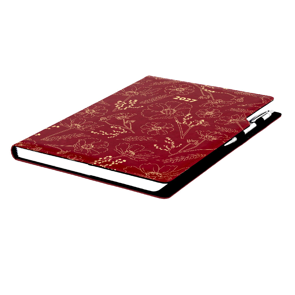 Diár DESIGN týždenný A4 2027 - bordová - Kvety
