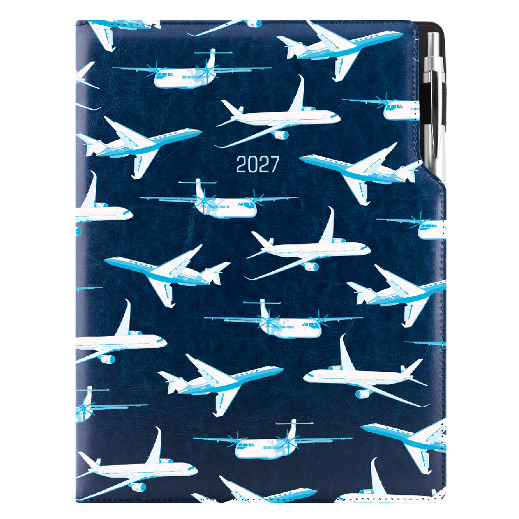 Diár DESIGN týždenný A4 2027 český - modrá - lietadlá