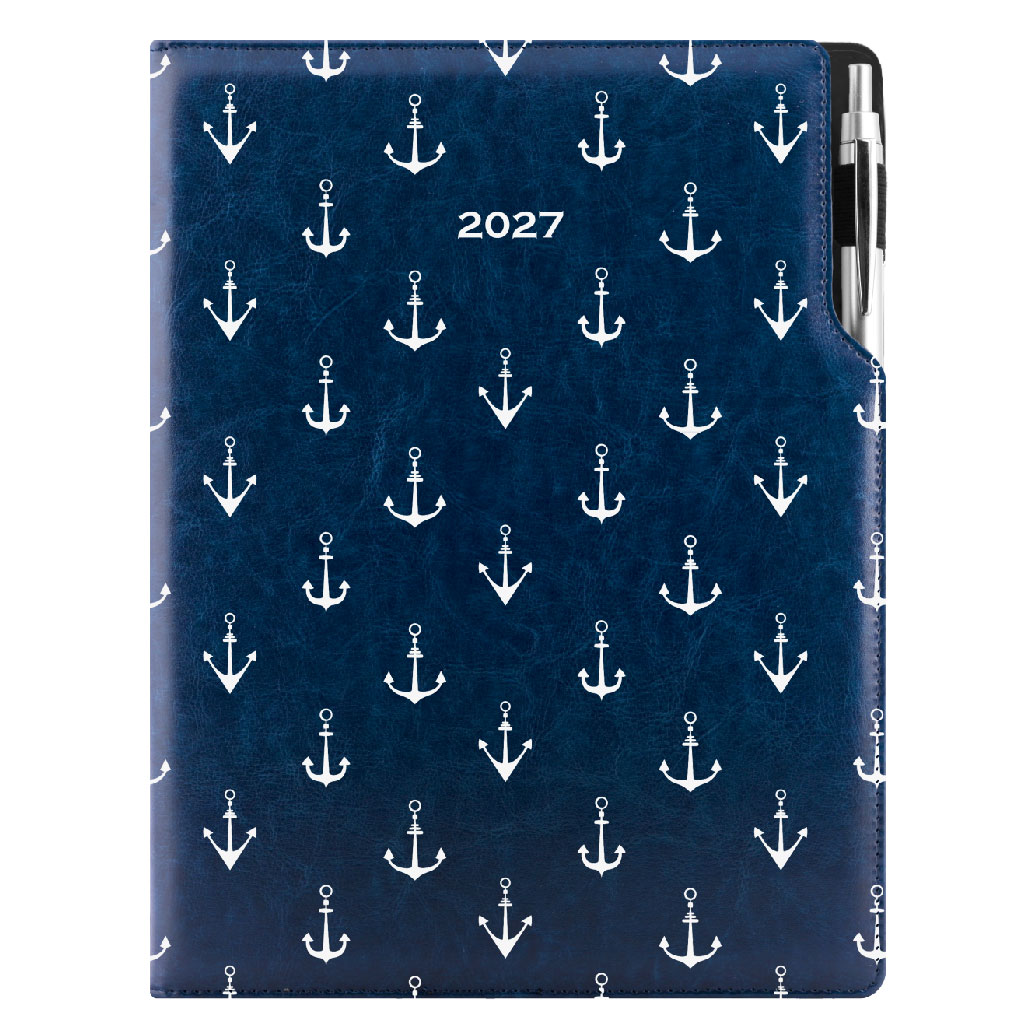 Diár DESIGN týždenný A4 2027 - modrá - Námorník - kotvy