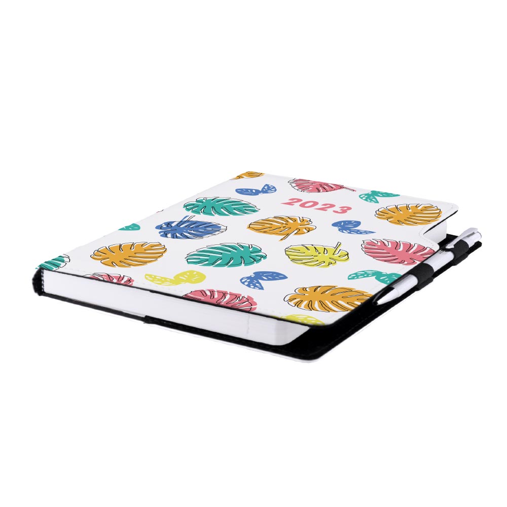 Diár obsahuje: okrúhle odtrhávacie rožky, bielu záložku a pero