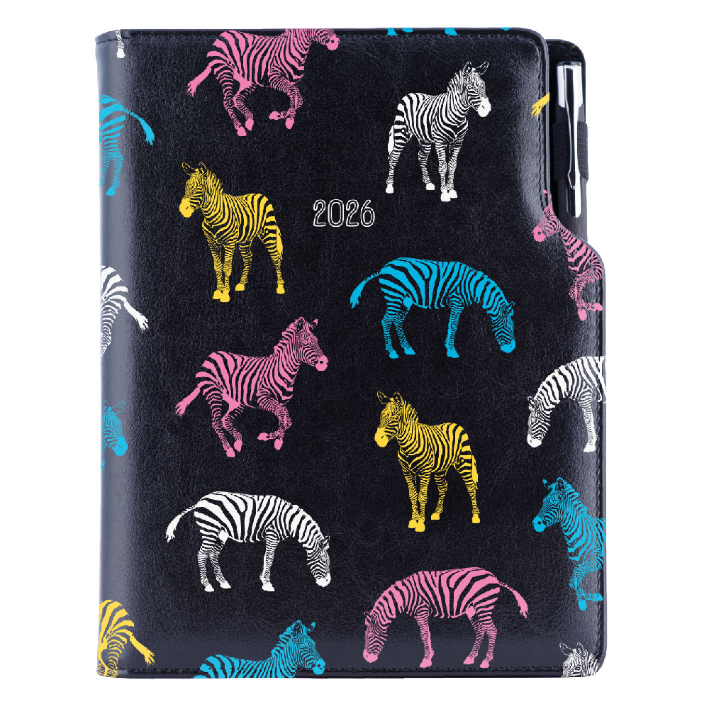 Diár DESIGN týždenný A5 2026 - čierna - zebra