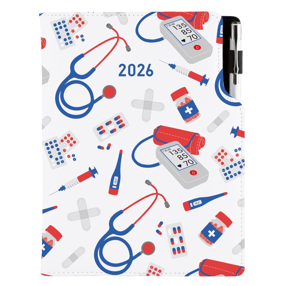 Diár obsahuje: okrúhle odtrhávacie rožky, bielu záložku a pero