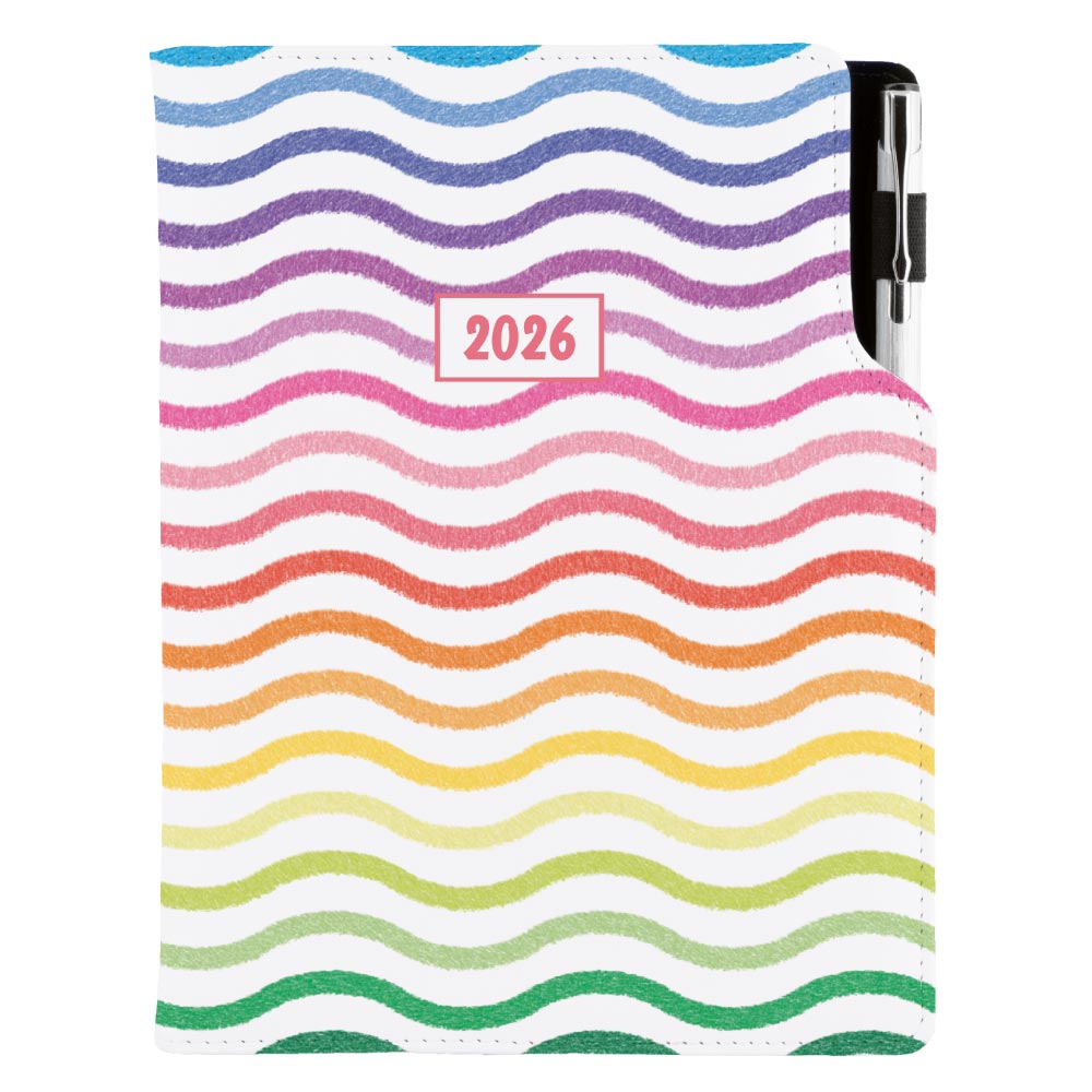 Diár obsahuje: okrúhle odtrhávacie rožky, bielu záložku a pero