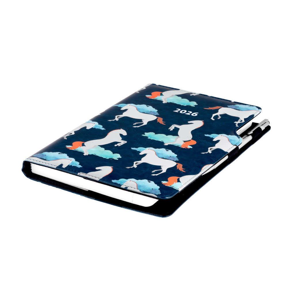 Diár DESIGN týždenný A5 2026 poľský - modrý - kone