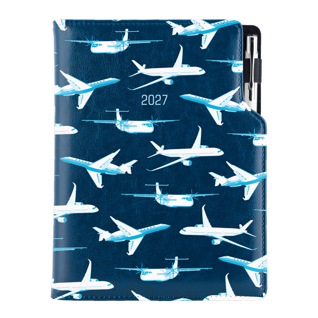 Diár DESIGN týždenný A5 2027 polský - modrá - lietadlá