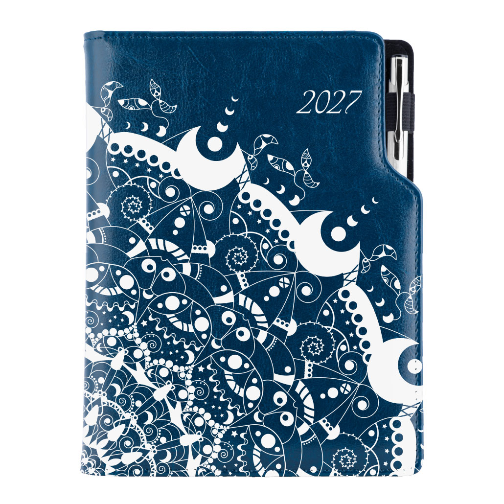Diár DESIGN týždenný A5 2027 slovenský - modrá - Ornament