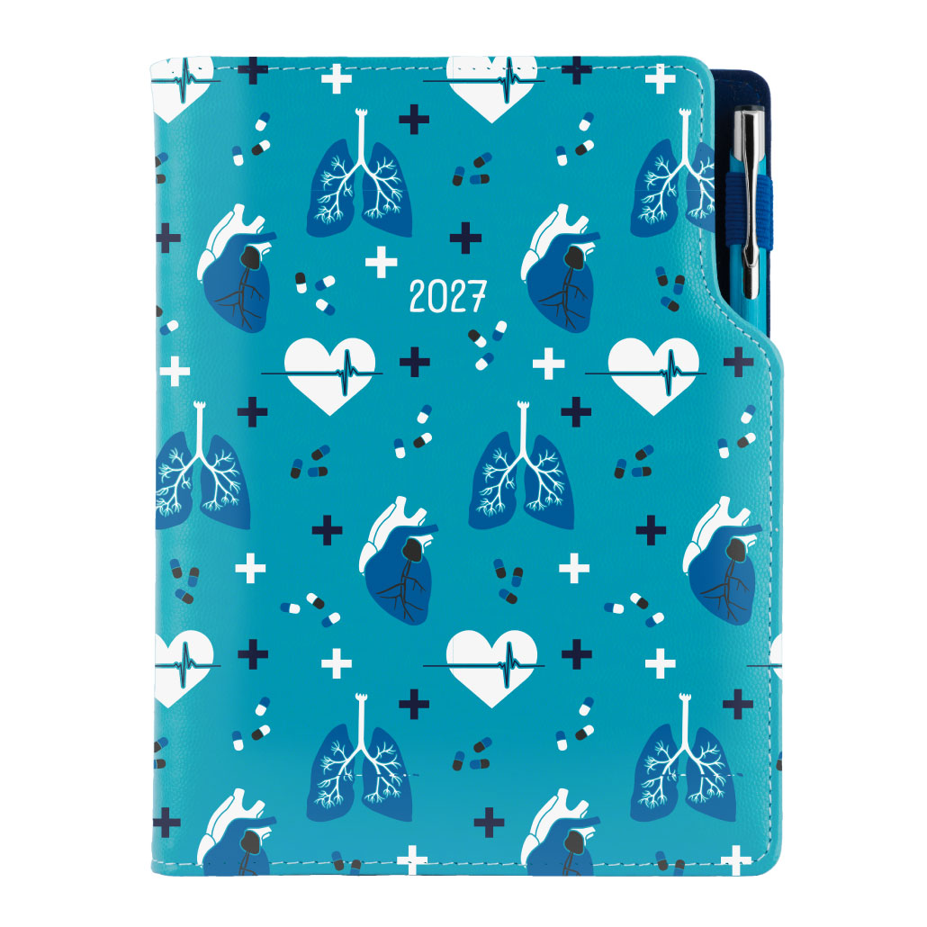 Diár DESIGN týždenný A5 2027 slovenský - tyrkysová- Doktor - srdce