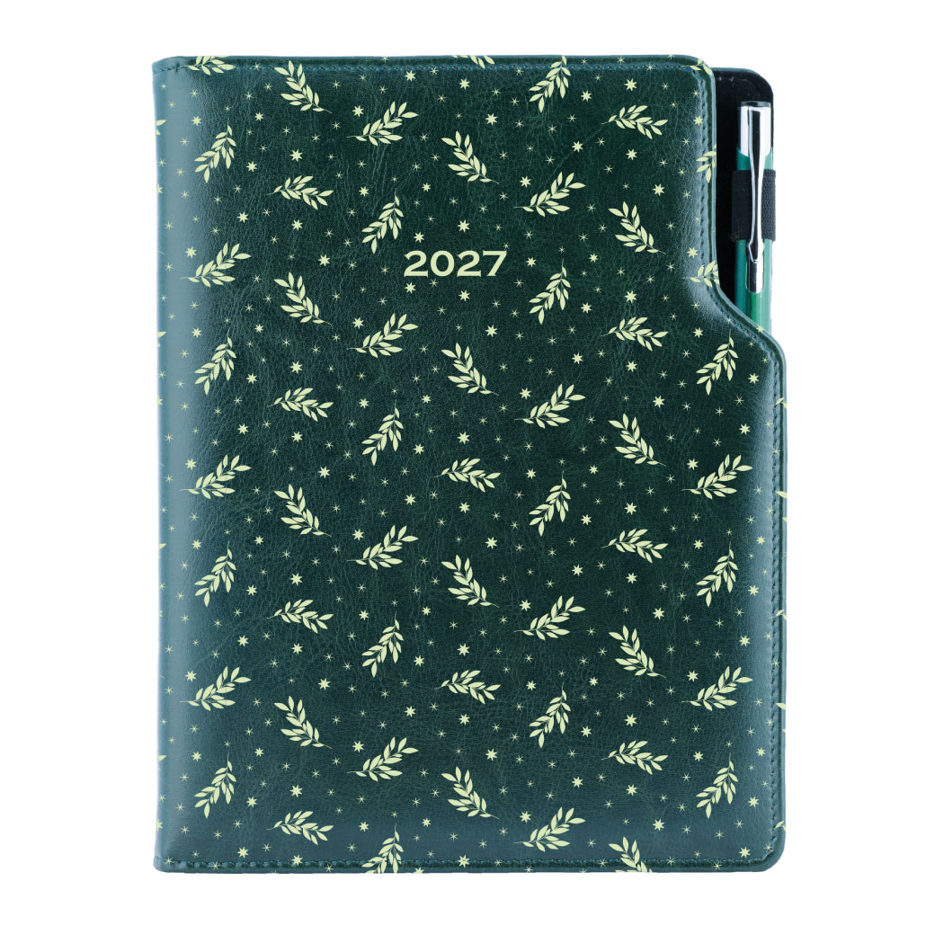 Diár DESIGN týždenný A5 2027 slovenský - zelená - Vetvičky