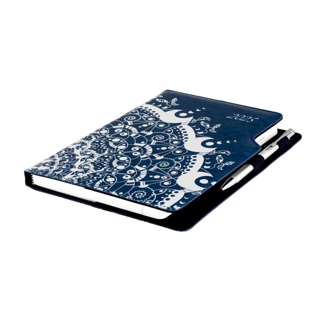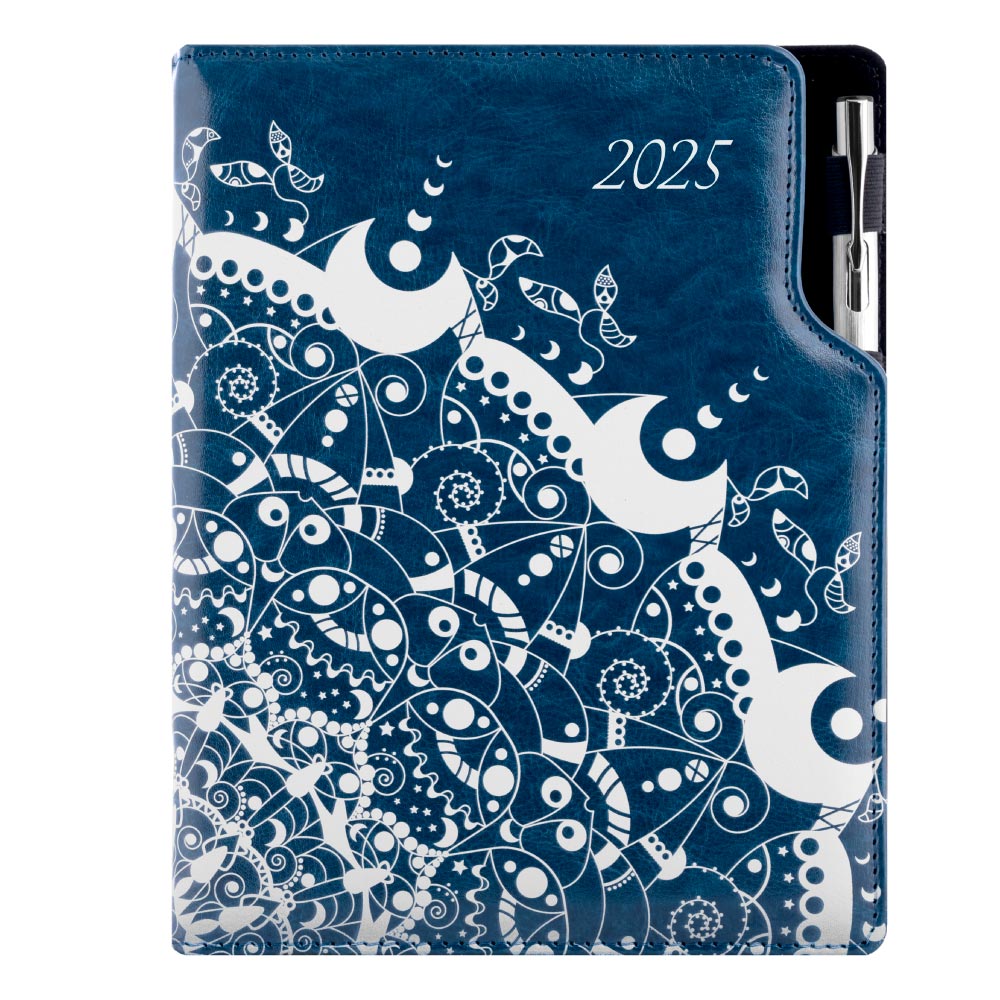 Diár DESIGN týždenný B5 2025 poľský - modrý - ornament