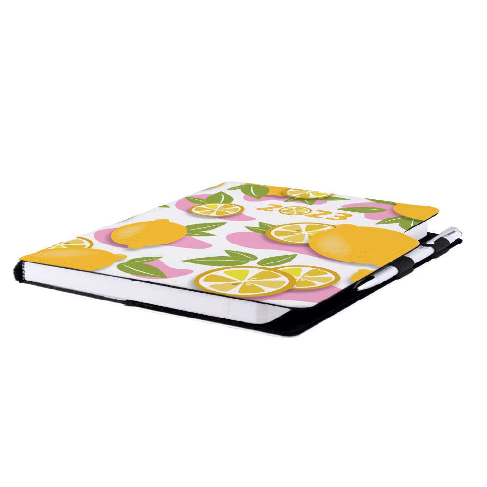Diár obsahuje: okrúhle odtrhávcie rožky, bielu záložku a pero