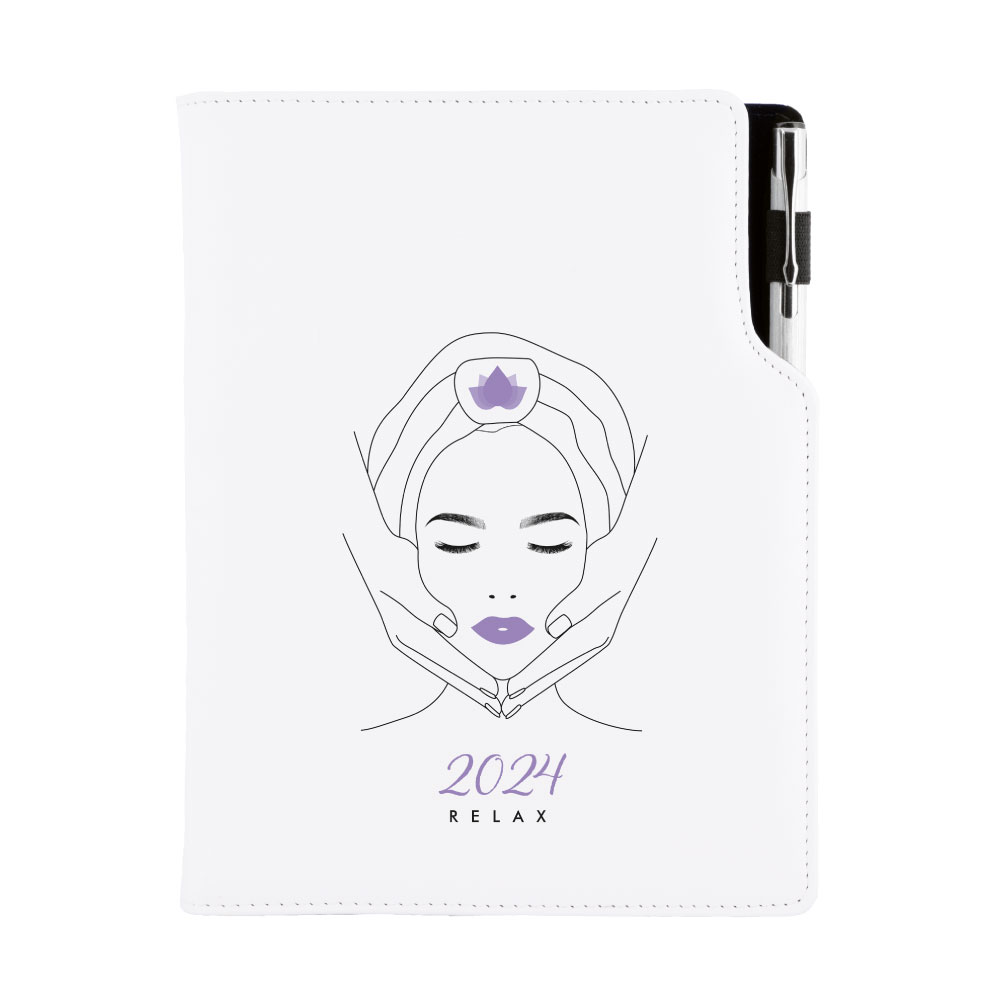 Diár obsahuje: okrúhle odtrhávcie rožky, bielu záložku a pero