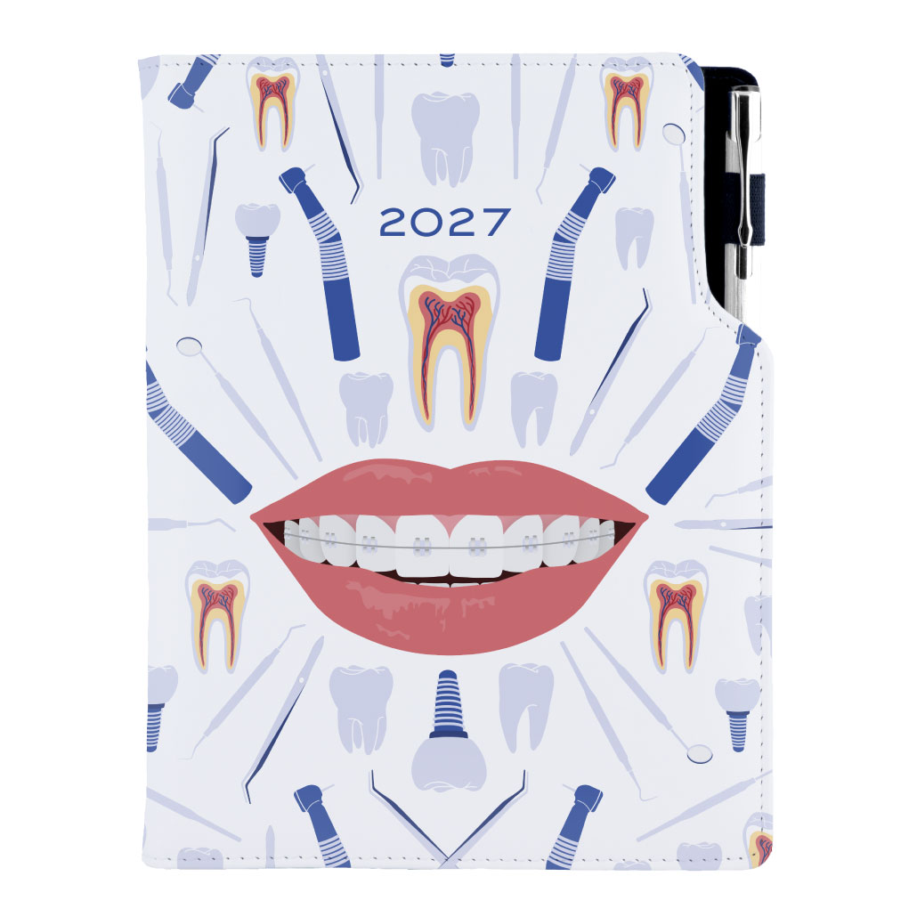 Diár DESIGN týždenný B6 2027 český - biela - zubár