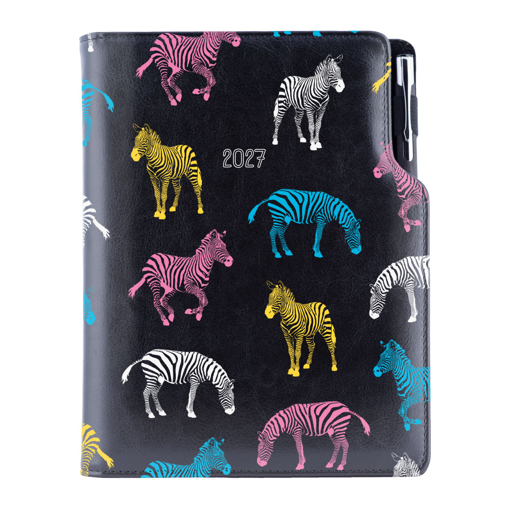 Diár DESIGN týždenný B6 2027 český - čierna - zebra