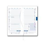 Diár obsahuje: okrúhle odtrhávacie rožky, bielu záložku a pero