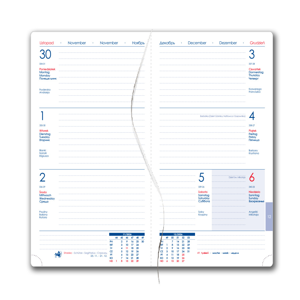 Diár obsahuje: okrúhle odtrhávacie rožky, bielu záložku a pero
