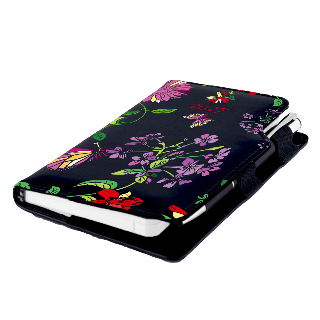 Diár DESIGN týždenný vreckový 2027 český - čierna - Kvety