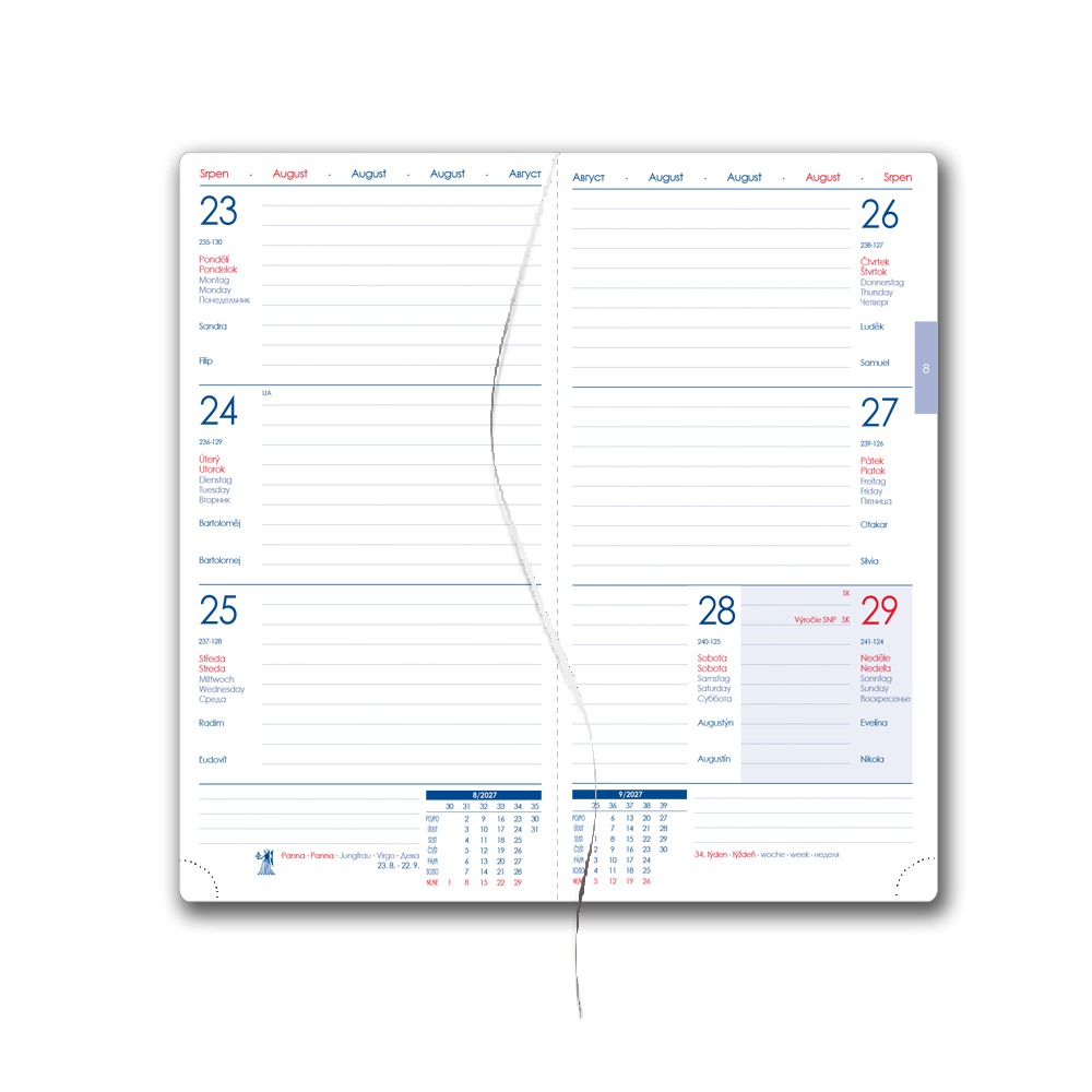 plánovací kalendár 2027, ročný plánovací kalendár CZ a SK,