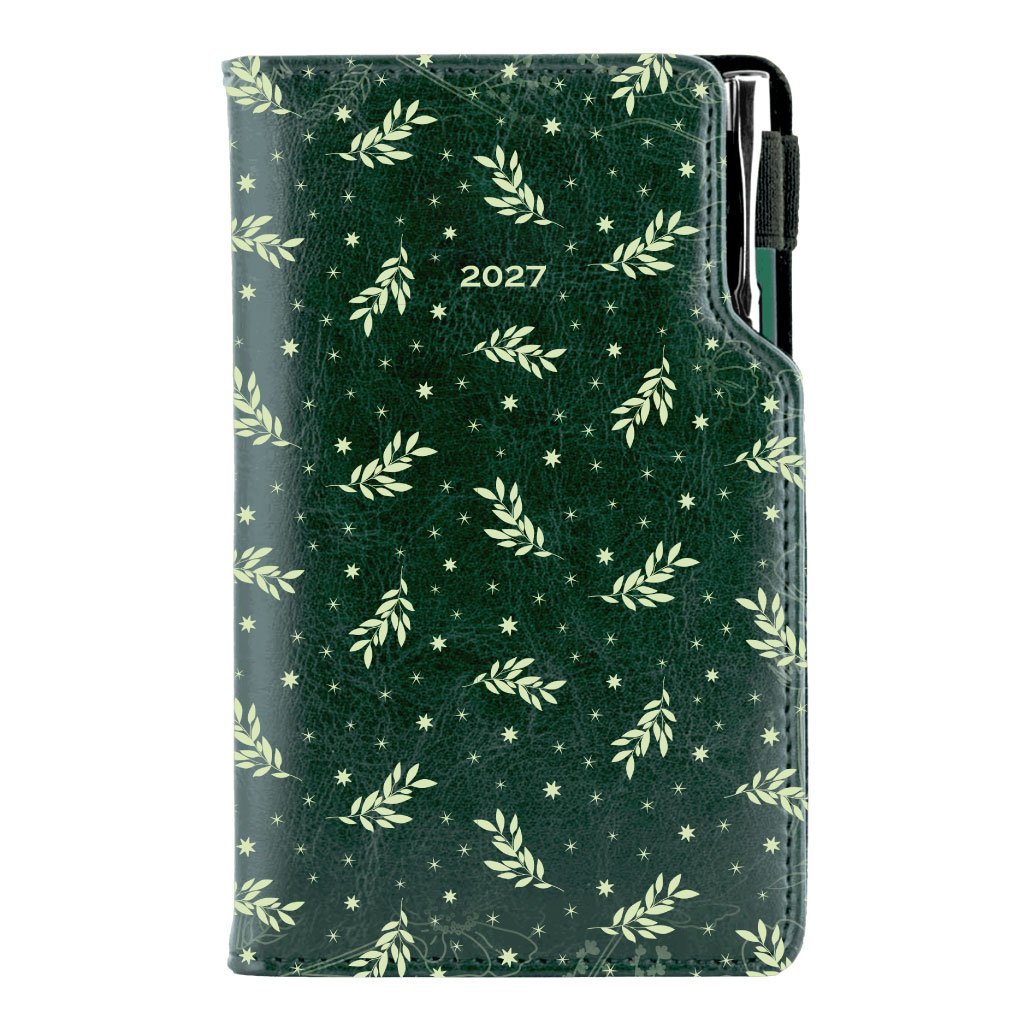 Diár DESIGN týždenný vreckový 2027 český - zelená - Vetvičky