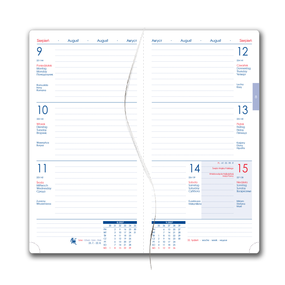 Obsah kalendária: ročný plánovací kalendár 2027, prehľadný kalendár,