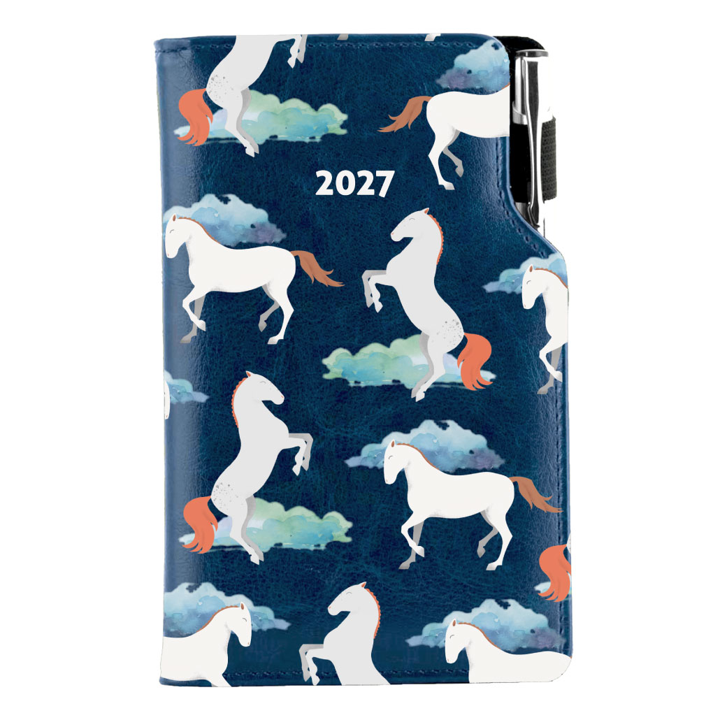 Diár DESIGN týždenný vreckový 2027 poľský - modrý - kone