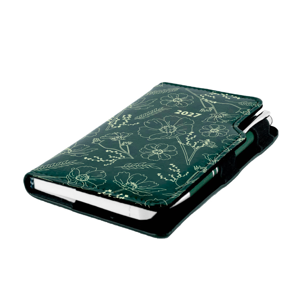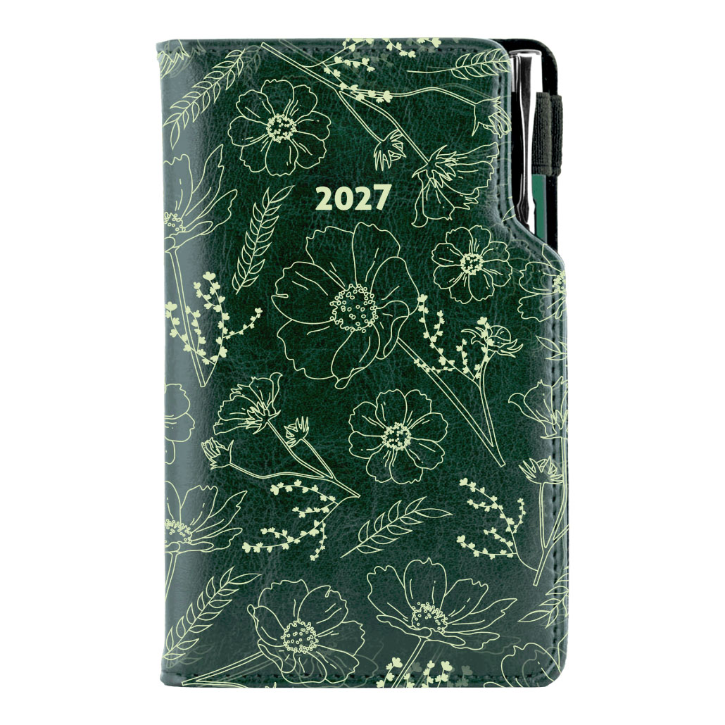 Diár DESIGN týždenný vreckový 2027 poľský - zelená - kvety