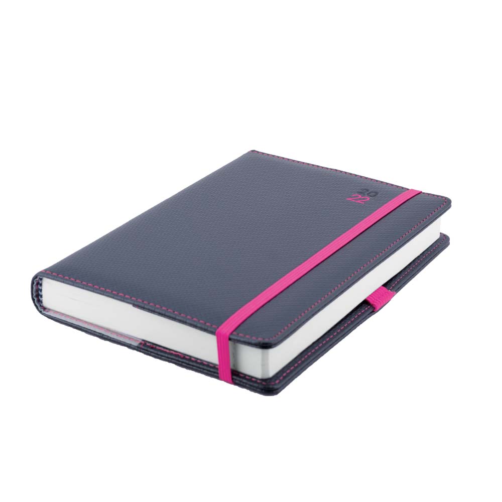 Diár ELASTIC denný A5 2022 polský - grafit/magenta gumička