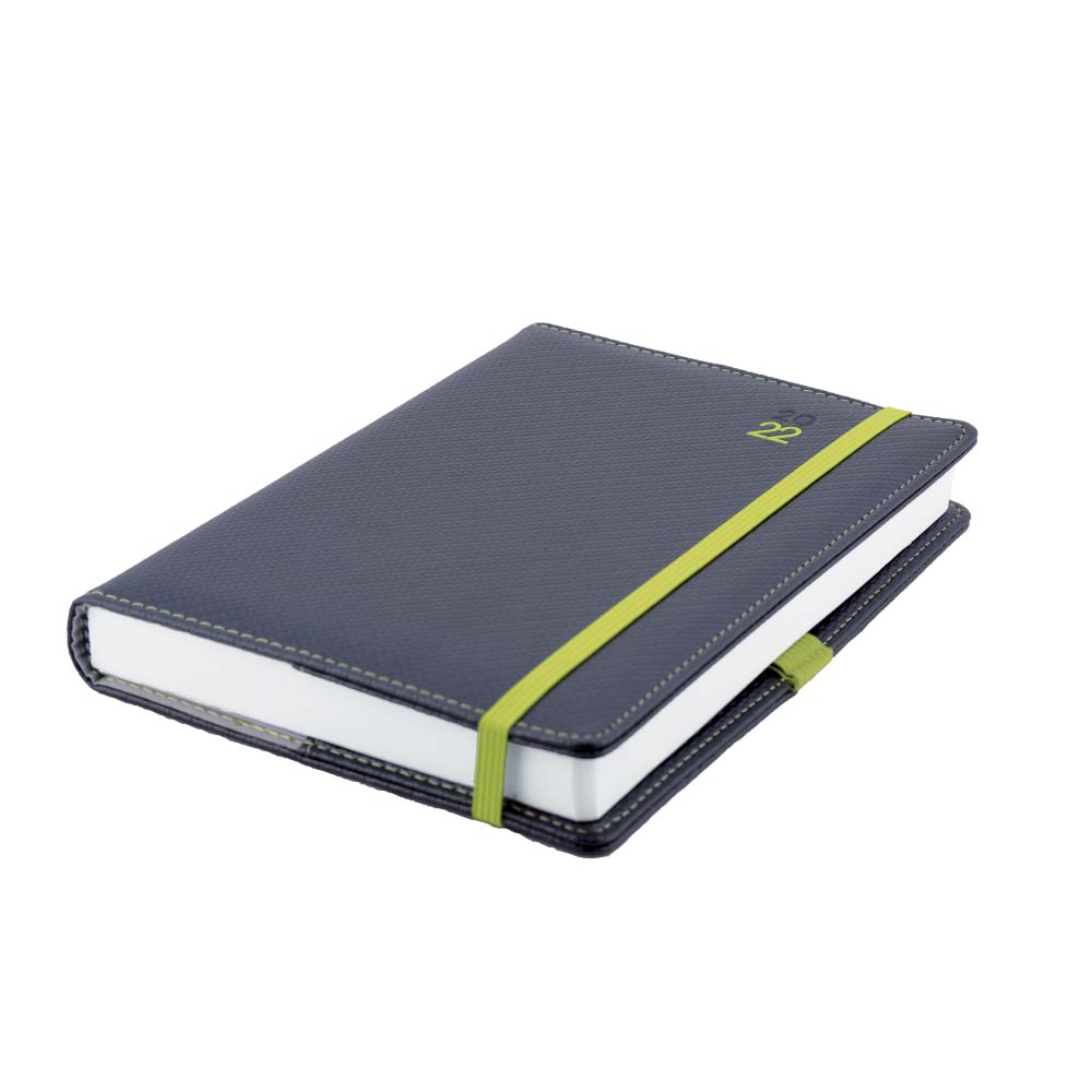Diár ELASTIC denný A5 2022 polský - grafit/zelená gumička