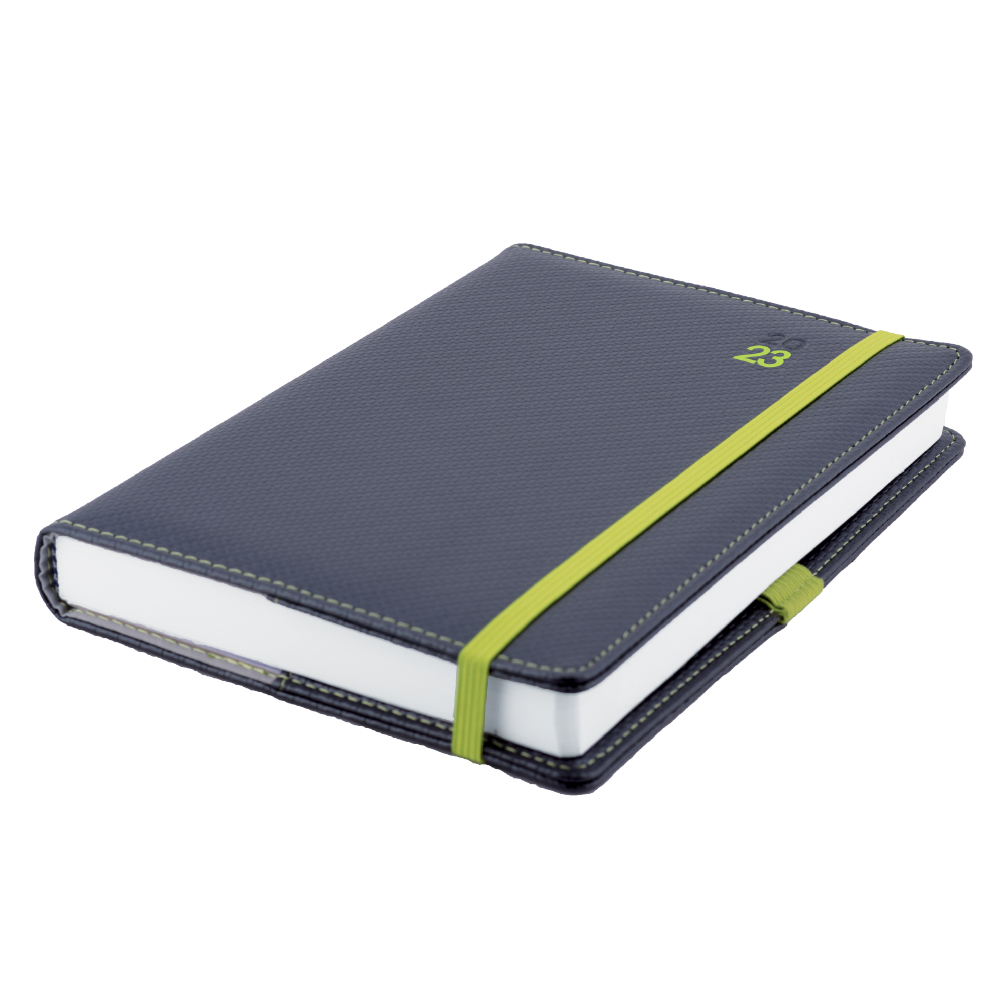 Diár ELASTIC denný B6 2023 polský - grafit/zelená gumička