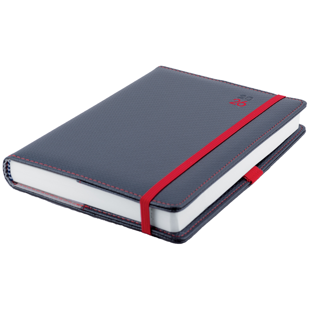 Diár ELASTIC denný B6 2026 polský - grafit/červená gumička