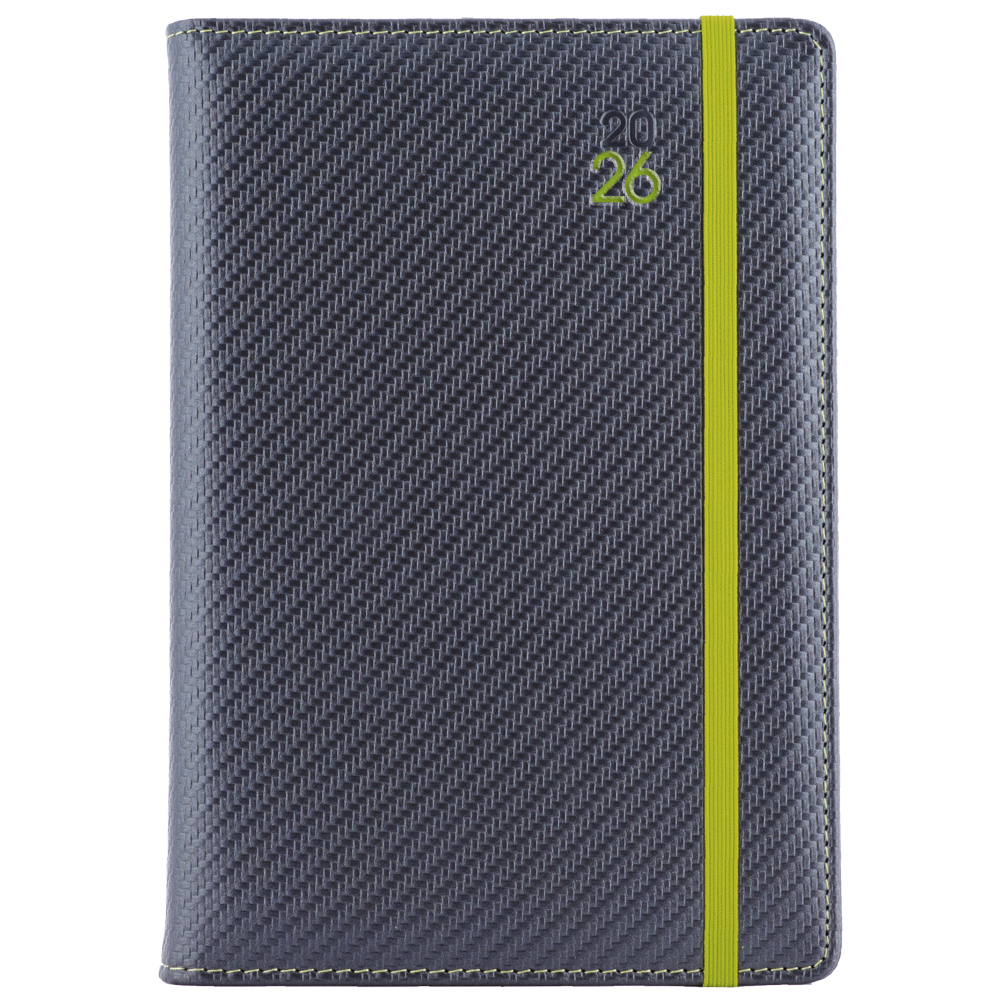 Diár ELASTIC týždenný A5 2026 - grafit/zelená gumička