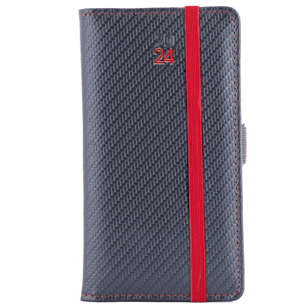 Diár ELASTIC týždenný vreckový 2024 český - grafit/červená gumička