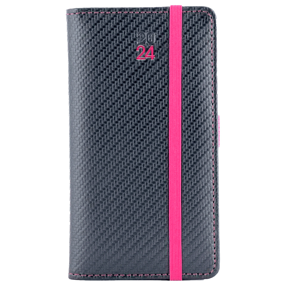 Diár ELASTIC týždenný vreckový 2024 polský - grafit/magenta gumička