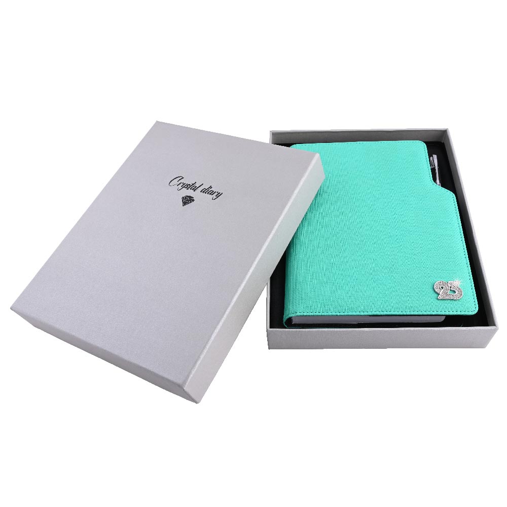 Diár je balený v darčekovej krabičke vystlanej saténom.
