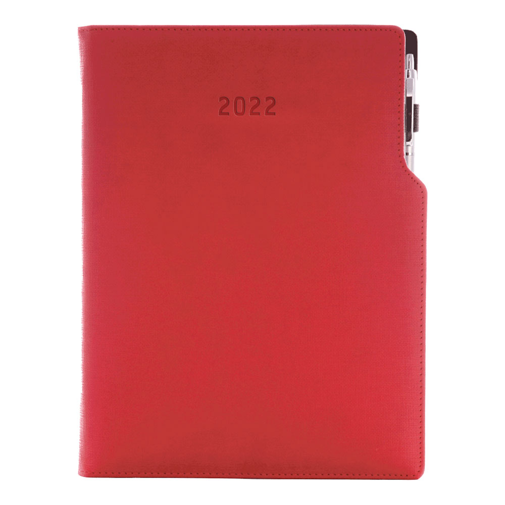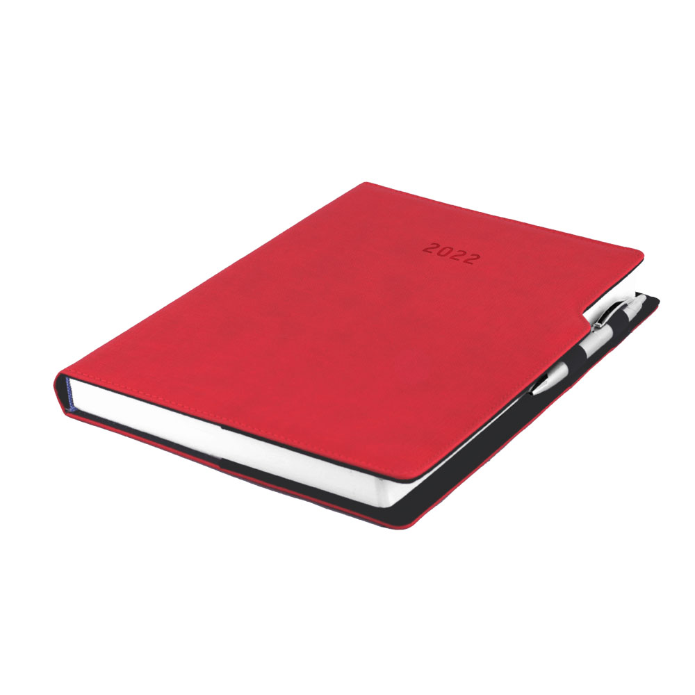 Diár GEP s perom denný A4 2022 polský - červená pastelová