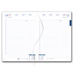 Diár obsahuje: krúhle odtrhávacie rožky, bielu záložku a pero
