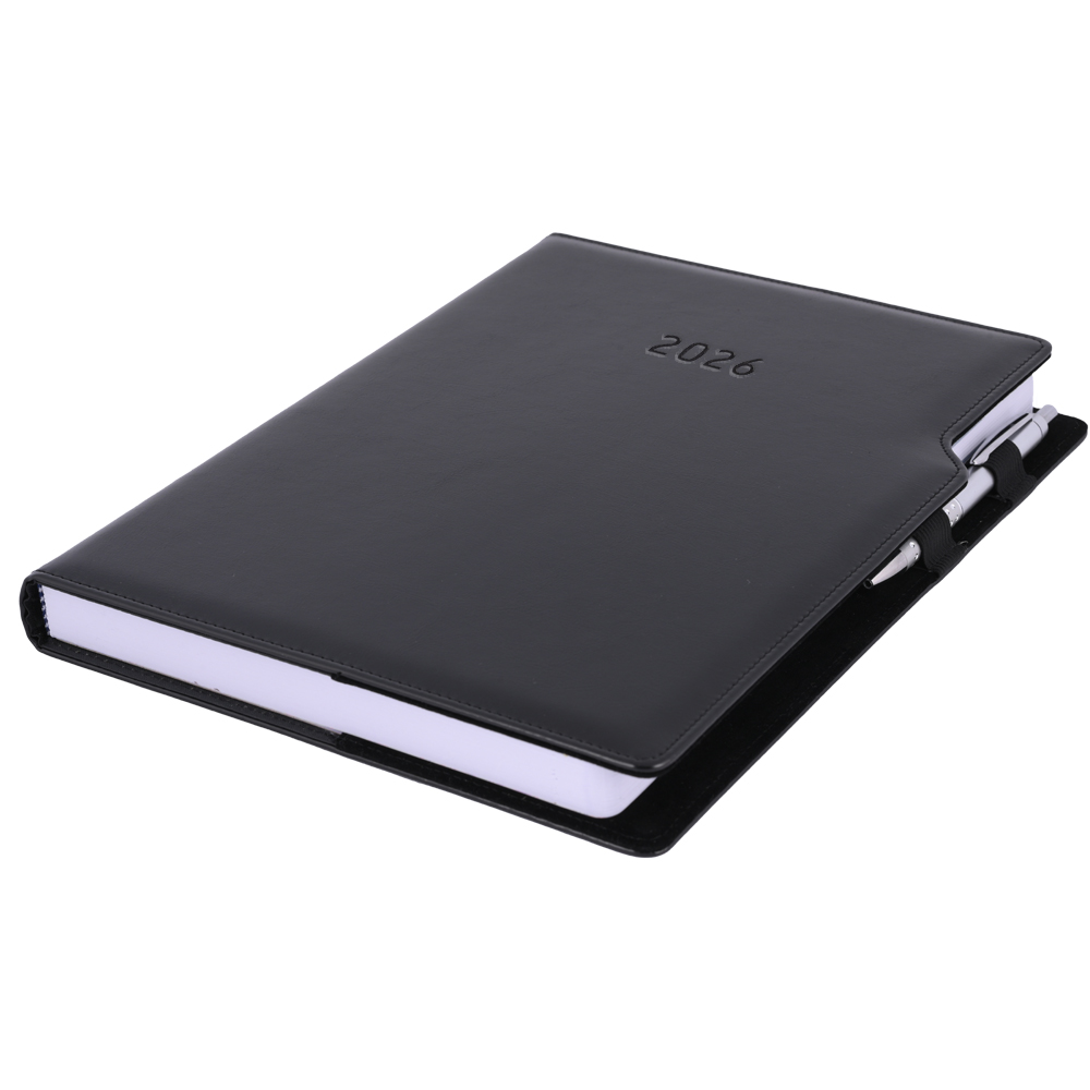 Diár GEP s perom denný A4 2026 - čierna/čierne vnútro